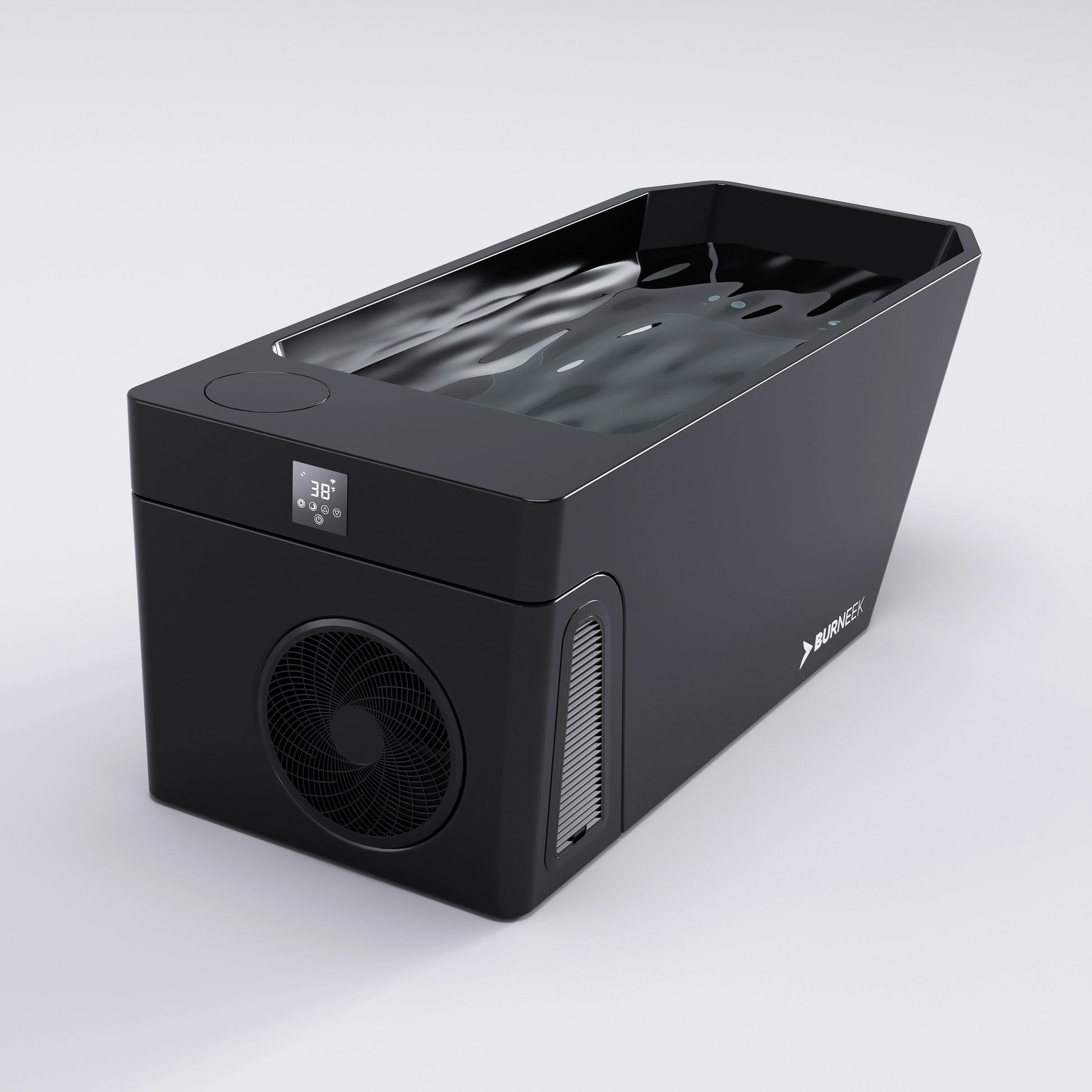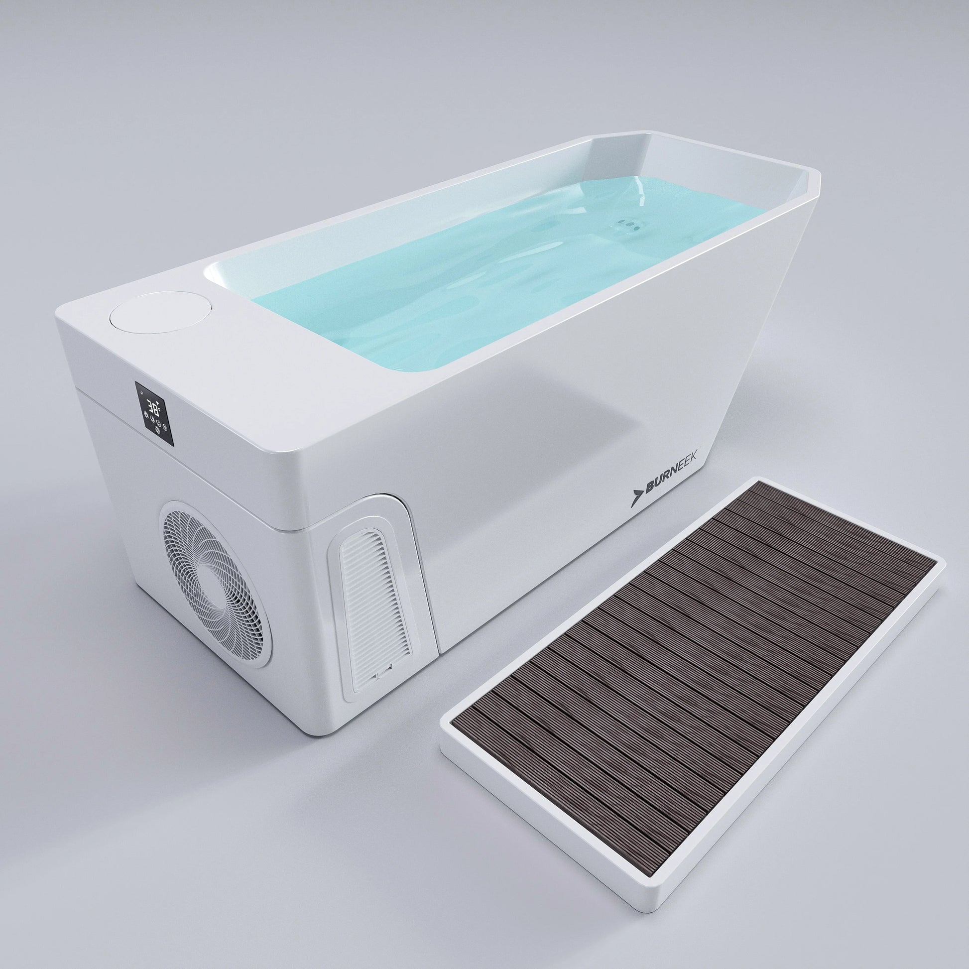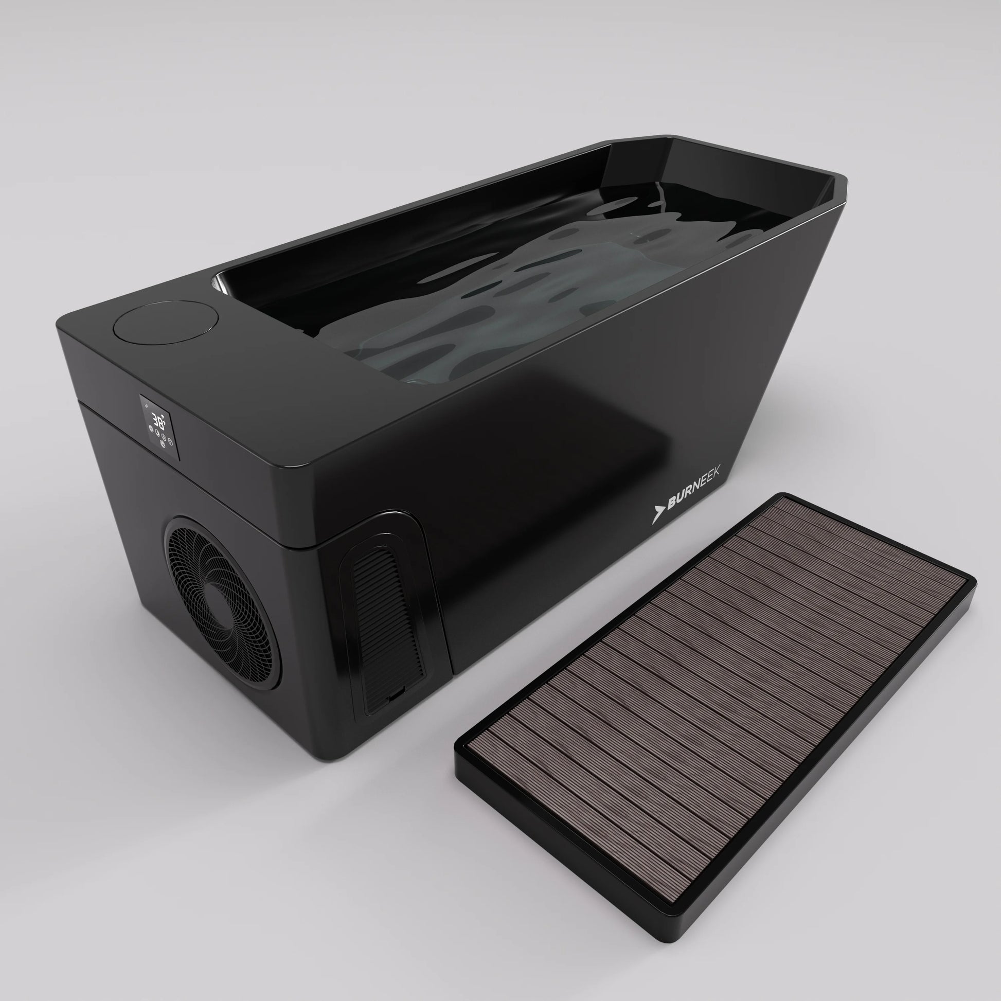 Burneek Frozeneek Ragnarok is an integrated cold plunge system with built-in cooling, built-in heating, filtration, ozone sanitation, and Wi-Fi control through the touch screen and Burneek App.