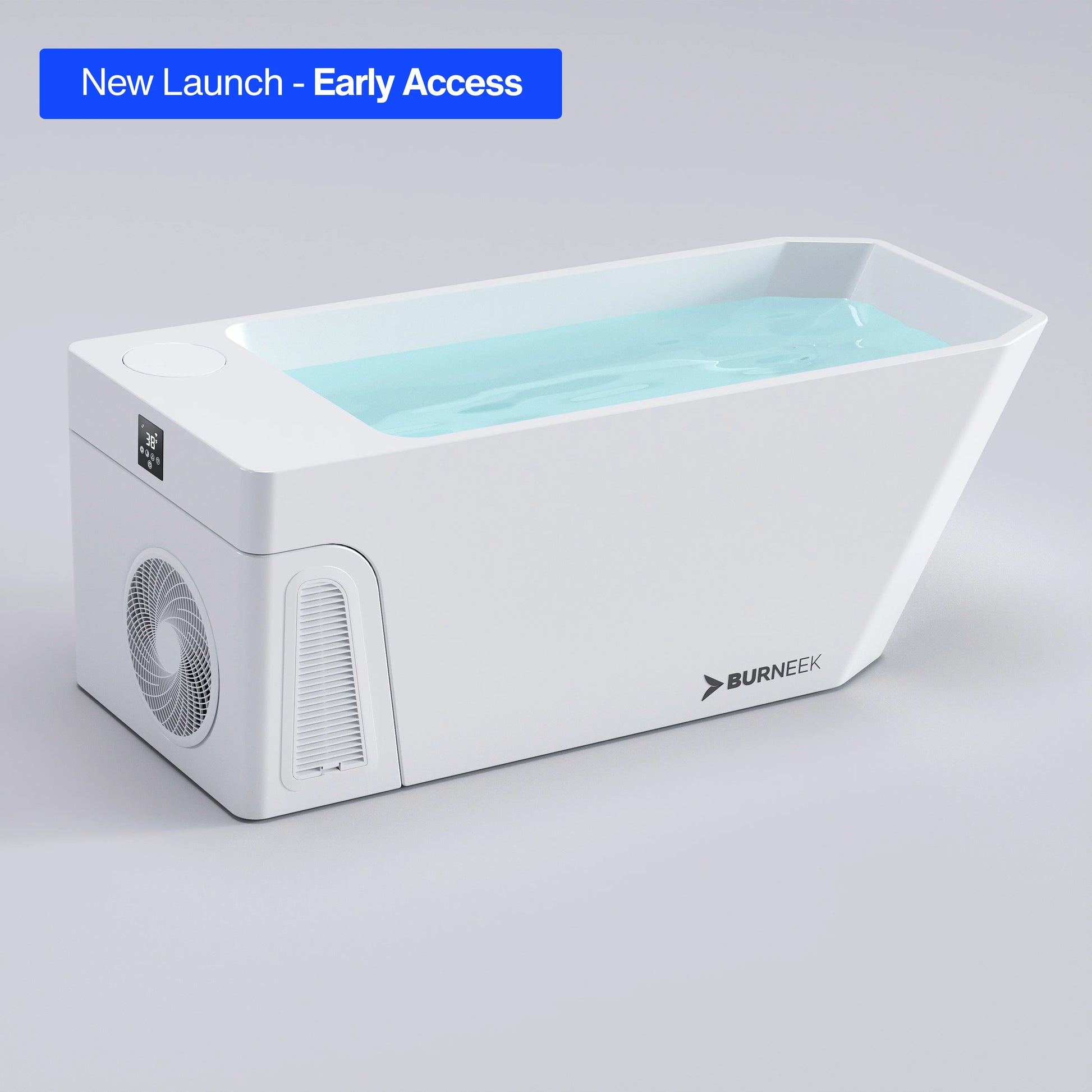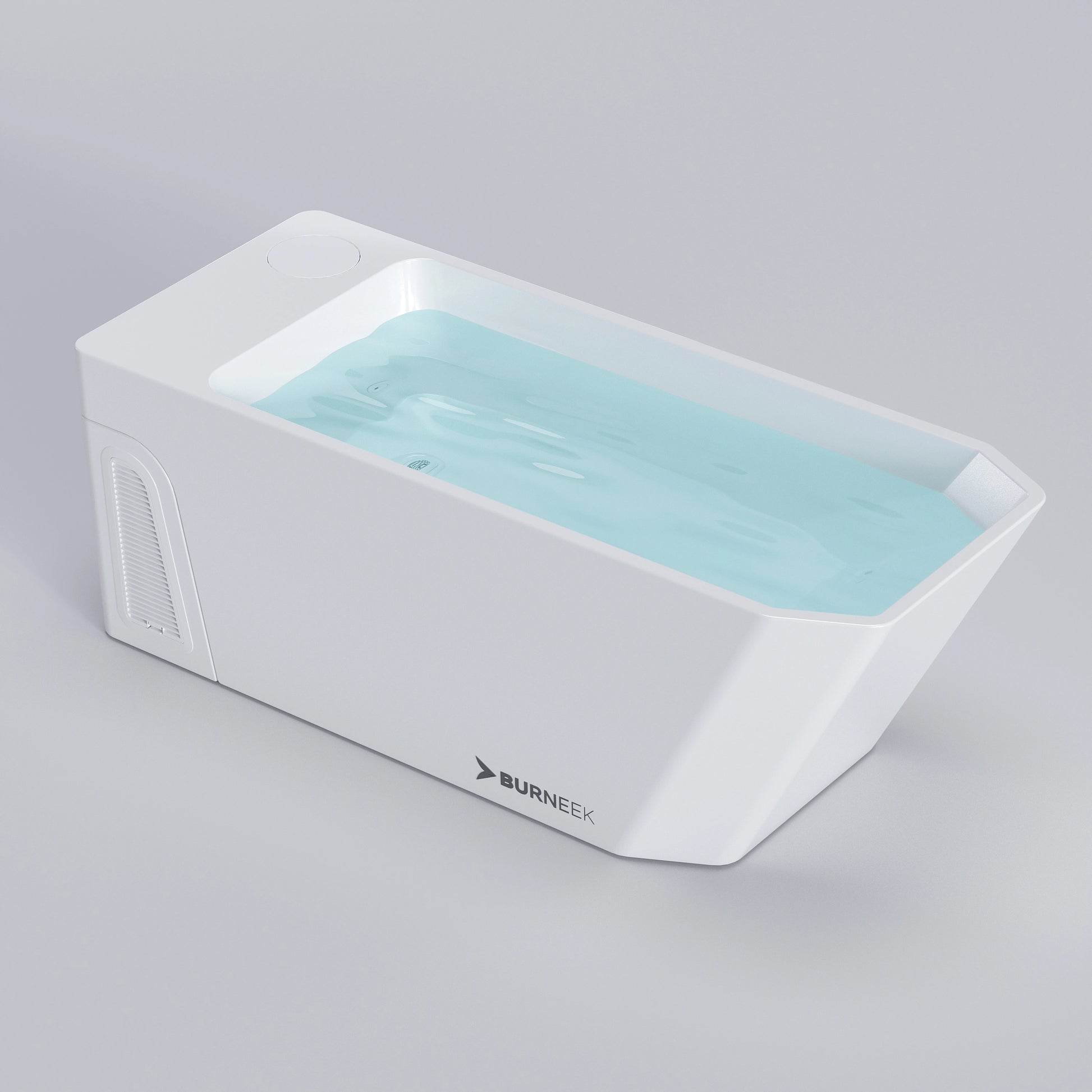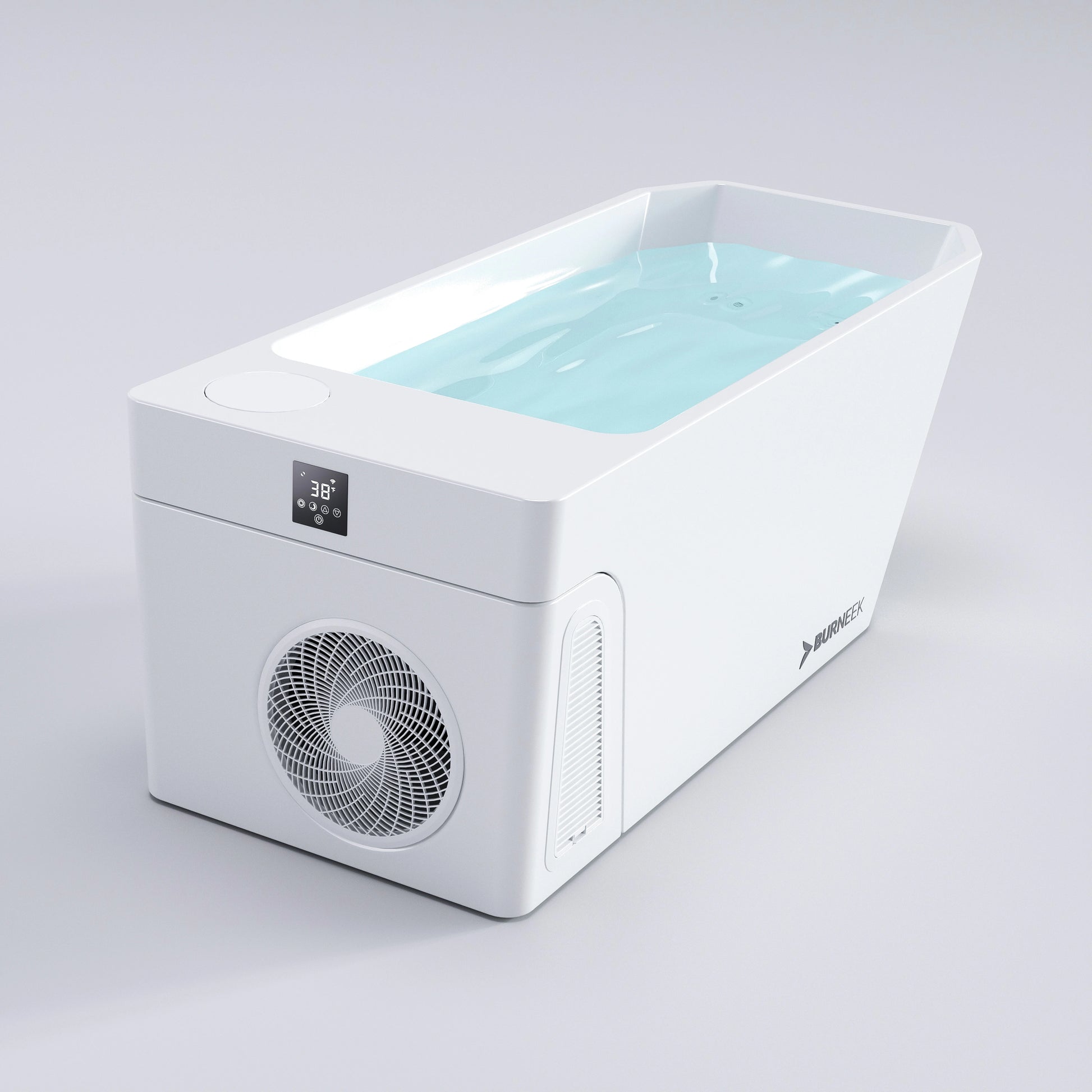 Burneek Frozeneek Ragnarok is an integrated cold plunge system with built-in cooling, built-in heating, filtration, ozone sanitation, and Wi-Fi control through the touch screen and Burneek App.