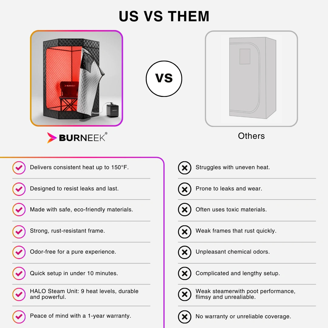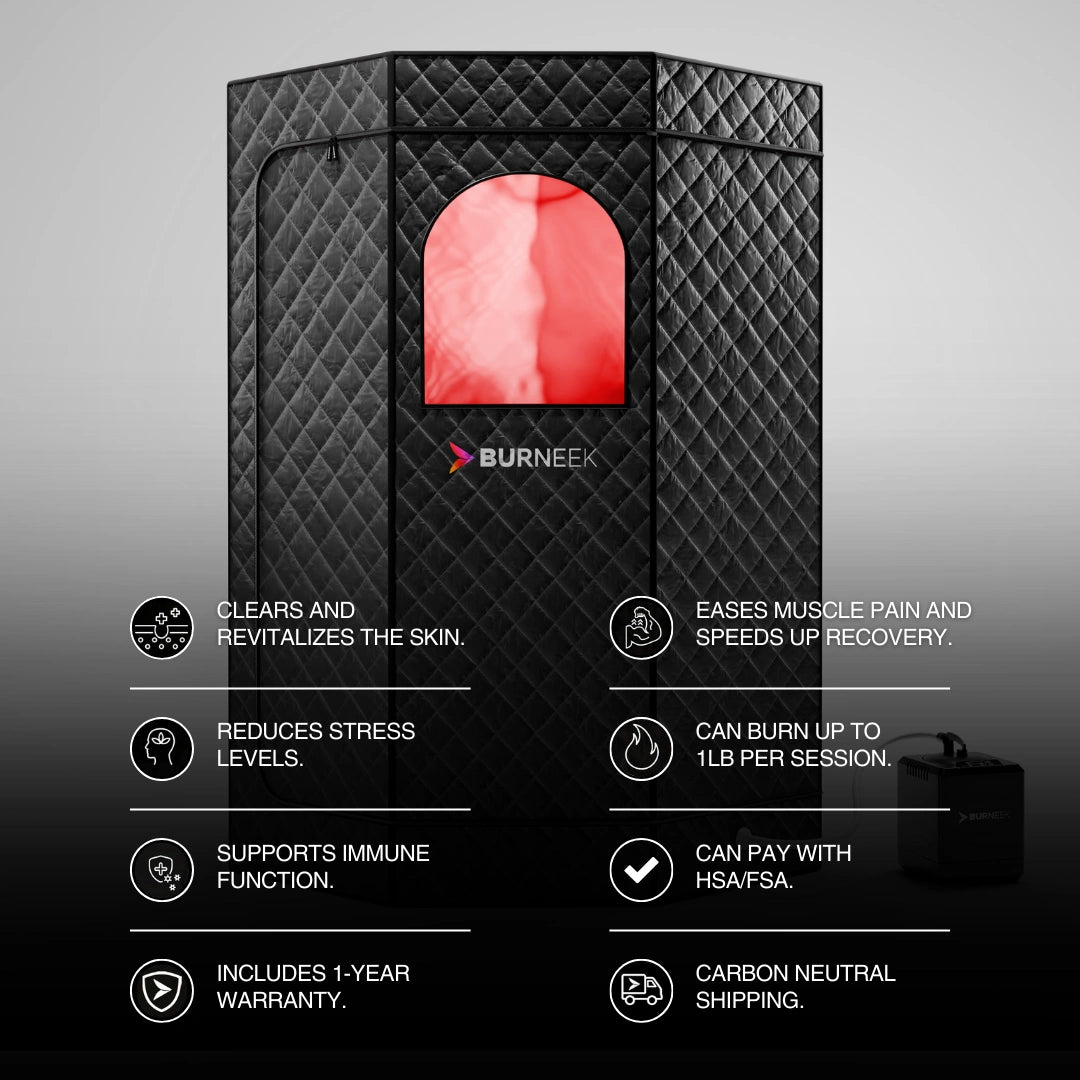 Burneek offers a portable sauna experience, making traditional sauna benefits accessible anywhere.